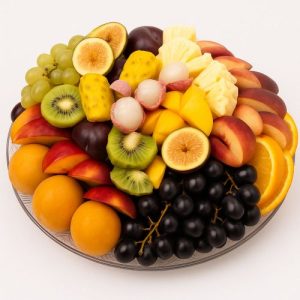8-12 סוגי פירות חתוכים טריים וטעימים מעוצבים על מגש פלסטיק מהודר. מגש הפירות מגיע עטוף באריזת צלופן מקושט בסרטים ובשילוב מזלגונים. מתנה מושלמת ליקירכם אם זה יום הולדת, לידה, אירוח בית או סתם לפנק מישהו שאוהבים. מומלץ לבחור את גודל המוצר לפי מס' הסועדים. הרכב הפירות עשוי להשתנות בהתאם לעונה.